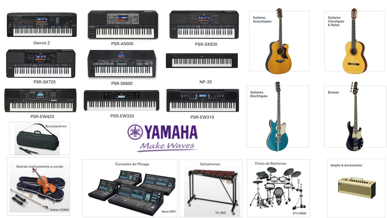Yamaha est partenaire de ABC Unisson, et propose de nombreux instruments de musique: claviers, Guitares, basses, amplis, Batteries, synthetiseurs et arrangeurs..